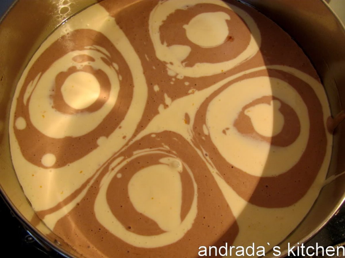 Cheese cake cu ciocolata si portocale PrecedentulUrmătorul DesertFoarte ușor55 min Trimite unui prieten Printează pagina Adresează o întrebare autorului Postează o poză cu rețeta gătită de tine Ingrediente 10 1 kg branza ricotta 6 oua 15 lingurite indulcitor 1 lingura cacao 1 lingurita coaja rasa de portocala 1 lingura esenta de vanilie