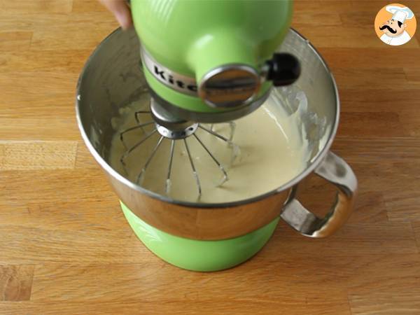 Cu un tel, combinati laptele, ouale, zaharul si vanilia.