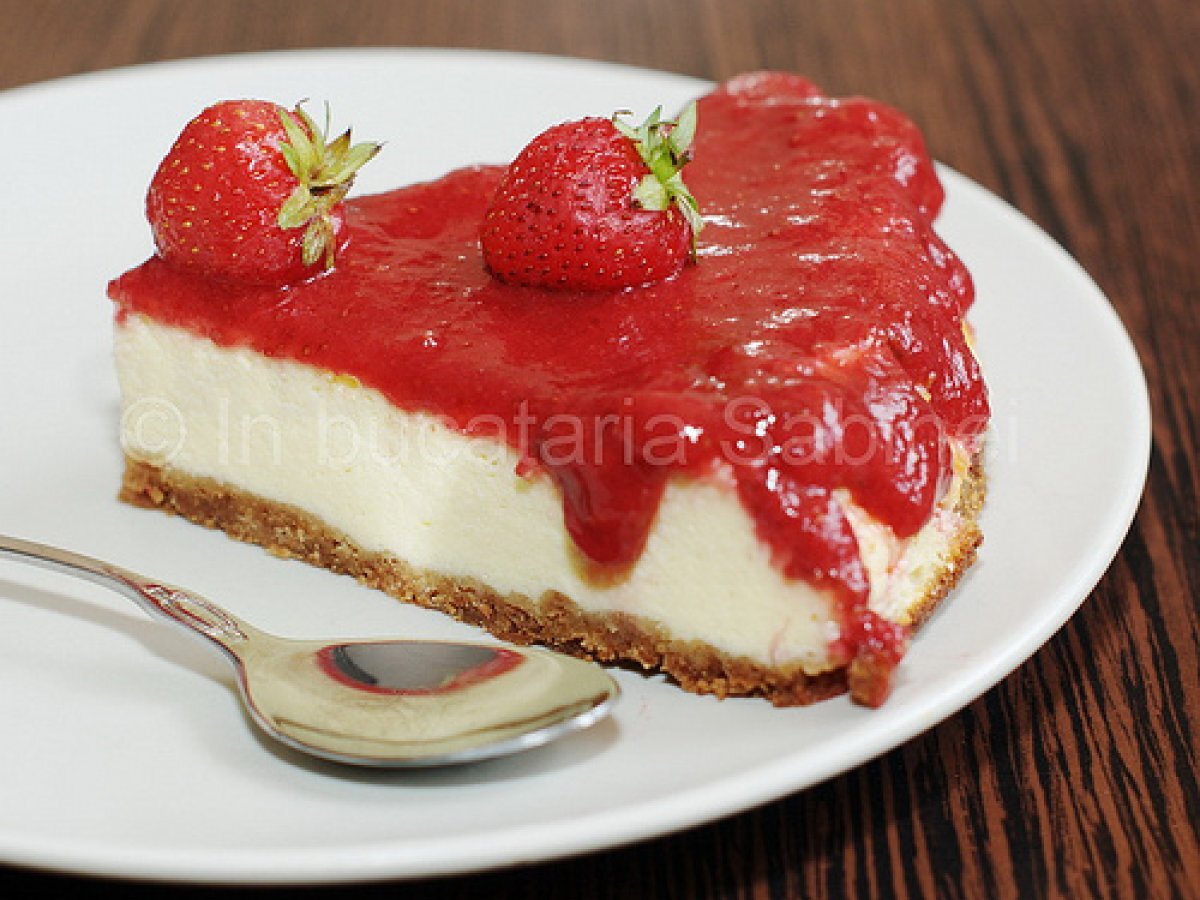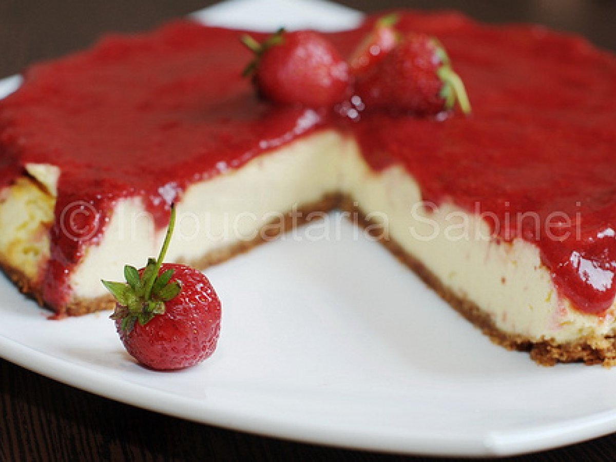 Cheesecake cu capsune PrecedentulUrmătorul DesertFoarte ușor55 min Trimite unui prieten Printează pagina Adresează o întrebare autorului Postează o poză cu rețeta gătită de tine Ingrediente 8 135 grame biscuiti digestivi 100 grame unt 2 linguri de apa 100 grame zahar brun 2 linguri amidon 500 grame crema de branza 3 oua 160 grame frisca lichida 2 plicuri zahar vanilat 2 lingurite esenta de vanilie pentru decor: 2 maini de capsune si 3 linguri de zahar un praf de sare