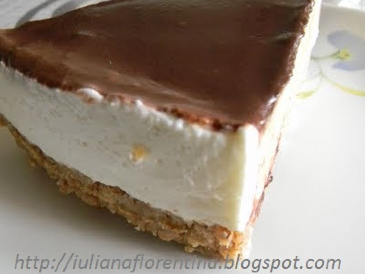 Cheesecake cu ciocolata PrecedentulUrmătorul DesertFoarte ușor55 min Trimite unui prieten Printează pagina Adresează o întrebare autorului Postează o poză cu rețeta gătită de tine Ingrediente 8 Baza: 300 g biscuiti 140 g de unt 1 lingura cu varf de zahar pudra 5 linguri lapte Crema: 200 g crema de branza 500 g mascarpone 5 linguri de zahar pudra 1 pliculet de zahar vanilat 250 ml frisca lichida 8 g de gelatina Topping: 160 g de ciocolata amara 115 ml lapte