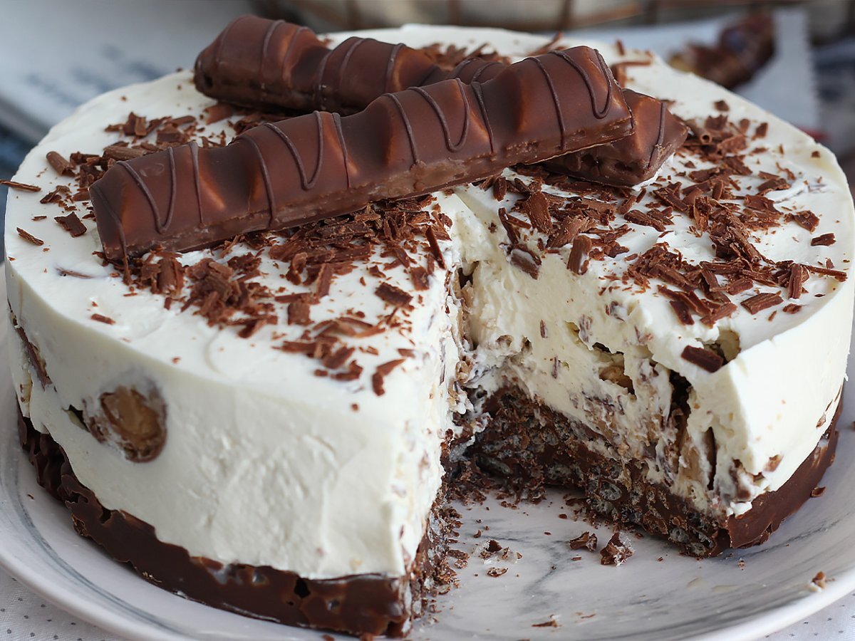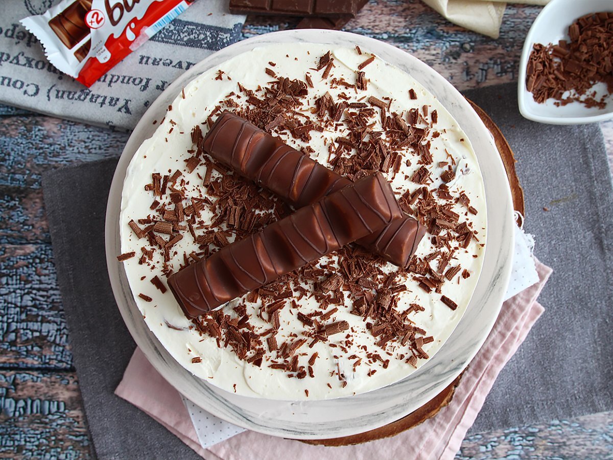 Ingredientele principale includ ciocolată cu lapte, orez expandat cu ciocolată, mascarpone, smântână lichidă, lapte condensat dulce și Kinder Bueno.