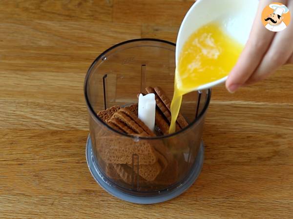 Puneți biscuiții speculoos și untul topit în chopper și amestecați totul bine.