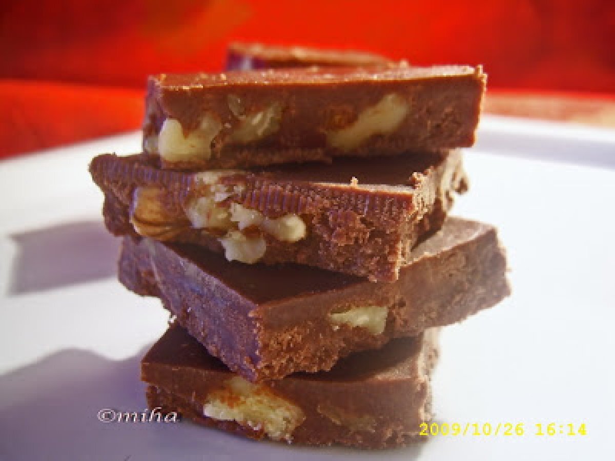 Ciocolata de casa cu nuci PrecedentulUrmătorul DesertFoarte ușor40 min893 Kcal Trimite unui prieten Printează pagina Adresează o întrebare autorului Postează o poză cu rețeta gătită de tine Ingrediente 4 250 g zahar 250 g lapte praf 200 g unt 50 g cacao 150 ml apa esenta de rom