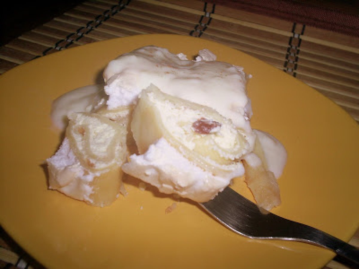 Clatite cu branza si sos de vanilie PrecedentulUrmătorul DesertFoarte ușor55 min Trimite unui prieten Printează pagina Adresează o întrebare autorului Postează o poză cu rețeta gătită de tine Ingrediente 5 Pentru clatite: 350 g faina 2 oua 1 pachet zahar vanilat coaja de lamaie 5 linguri ulei 400 mllapte putina apa minerala Pentru crema de branza: 500 g branza de vaci zahar dupa gust 1 vanilie coaja de lamaie 3 galbenusuri-stafide Pentru sosul de vanilie: 2 galbenusuri 2 linguri amidon 2 linguri zahar 1 zahar vanilat 400 ml lapte