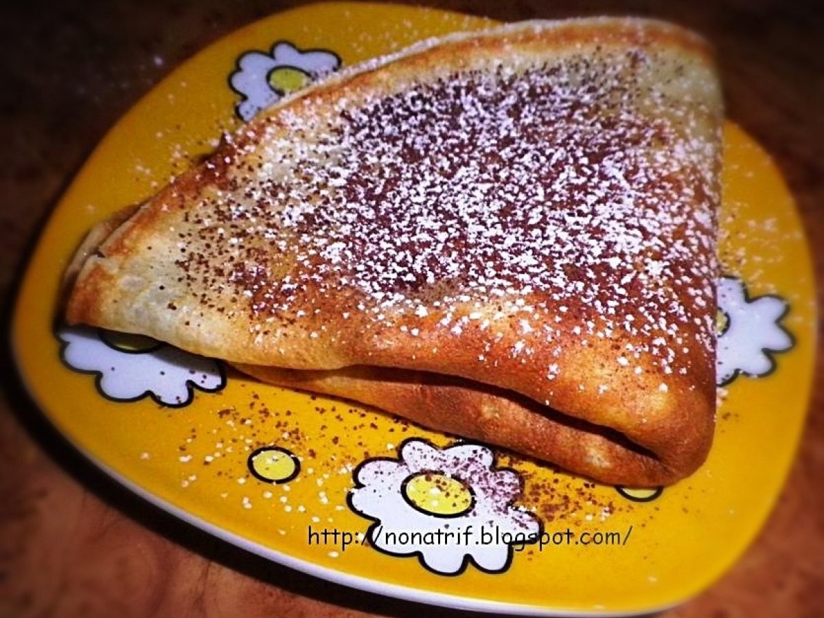 Clatite cu unt umplute cu finetti si banane DesertFoarte ușor20 min Trimite unui prieten Printează pagina Adresează o întrebare autorului Postează o poză cu rețeta gătită de tine Ingrediente 6 Ingrediente pentru 6 buc: * 2 oua * 1 cana lapte * 1 cana faina * 1/4 pachet unt (topit in prealabil) * 2 linguri zahar * 1 praf de sare * Umplutura: * finetti * banane * biscuitu maruntiti Decor: * cacao * zahar pudra
