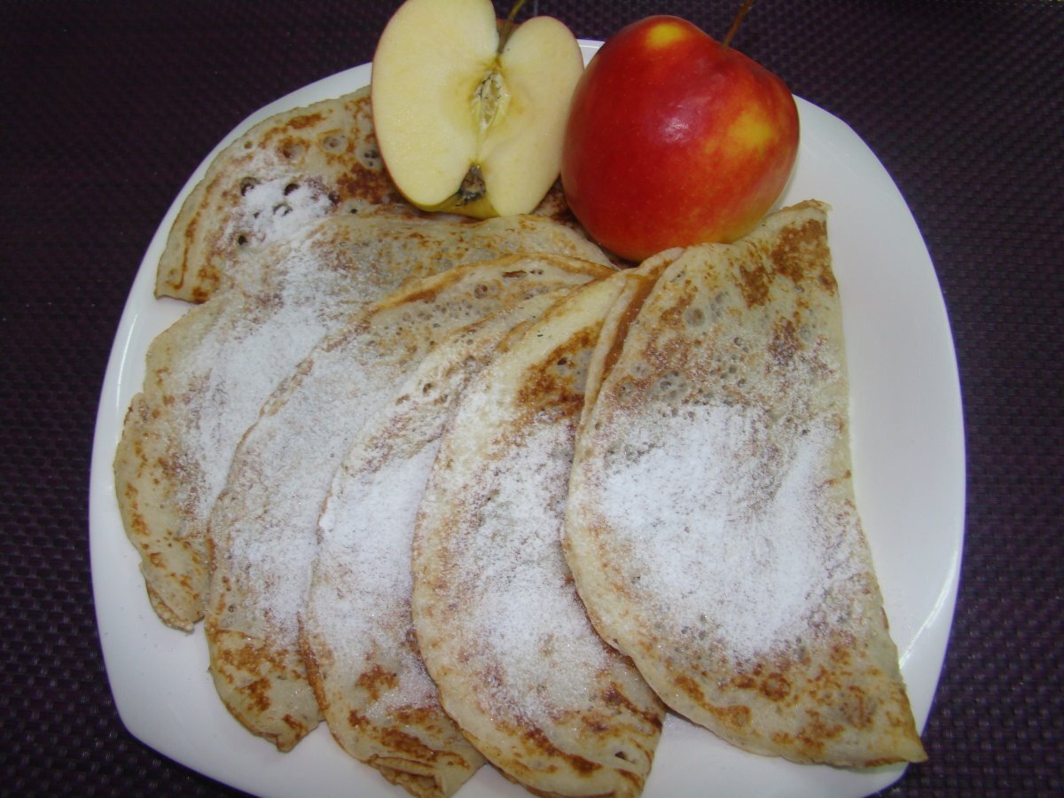Clatite dospite cu mar PrecedentulUrmătorul DesertFoarte ușor1 oră Trimite unui prieten Printează pagina Adresează o întrebare autorului Postează o poză cu rețeta gătită de tine Ingrediente 8 500 g faina alba 1 litru lapte 1 ou 2 lingurite de sare 2 linguri zahar 1 cubulet de drojdie pentru umplutura: 2-3 kg mere 300 g zahar 2 lingurite pudra de scortisoara