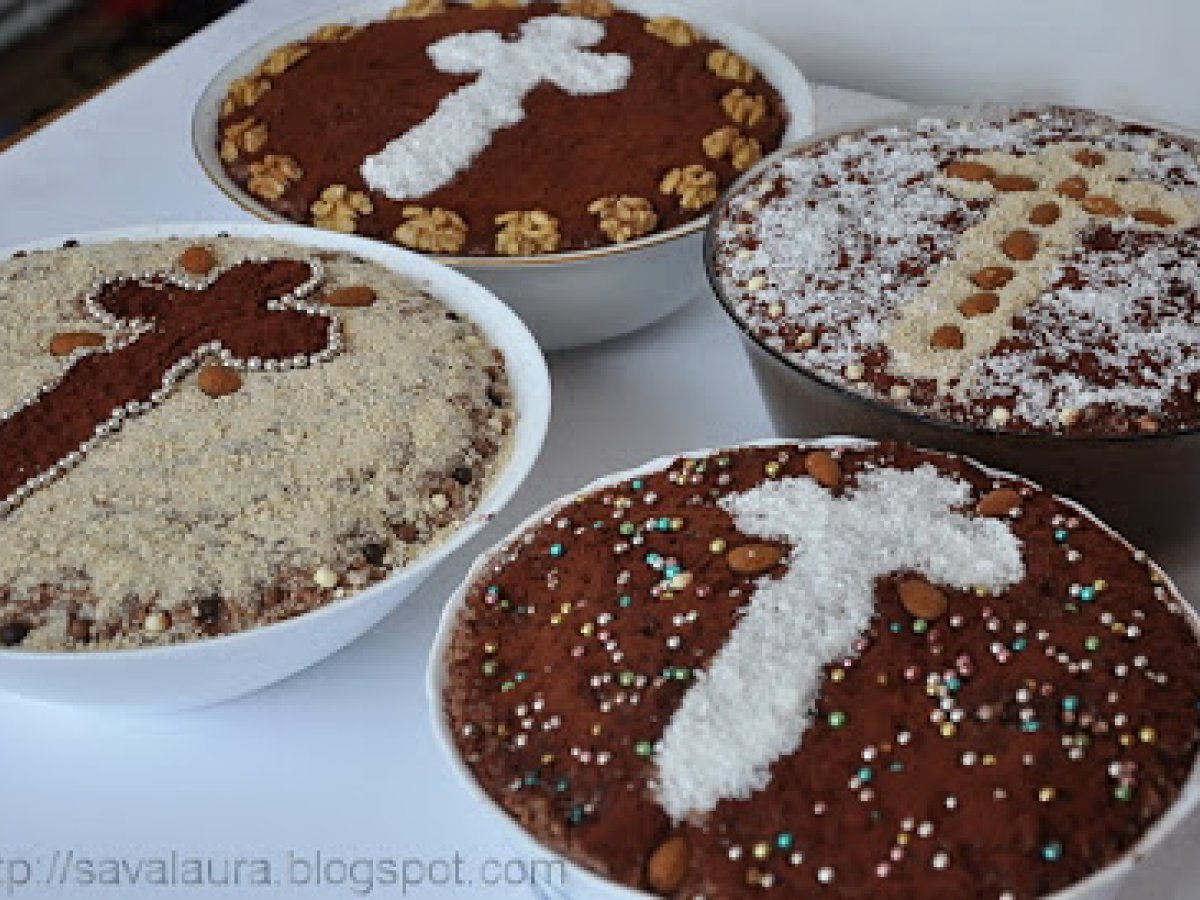 Coliva ca-n banat PrecedentulUrmătorul DesertFoarte ușor50 min Trimite unui prieten Printează pagina Adresează o întrebare autorului Postează o poză cu rețeta gătită de tine Ingrediente 8 4 kg. arpacas sau grau 2 linguri sare 15 litri apa 3 kg. zahar 2 kg. nuca macinata 200 g. migdale/alune prajite 200 g. cacao 15 sticlute esenta de rom 2 sticlute esenta de vanilie 10 pliculete zahar vanilat stafide inmuiate in rom coaja de lamaie, portocale Pentru ornat: nuca de cocos biscuiti macinati cacao jumatati intregi de miez de nuca migdale bombonele colorate
