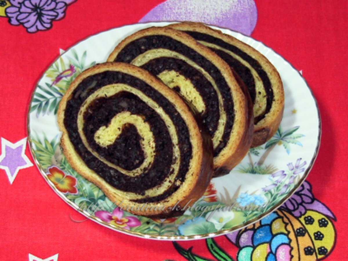 Cozonac cu nuca si cu mac PrecedentulUrmătorul DesertFoarte ușor55 min Trimite unui prieten Printează pagina Adresează o întrebare autorului Postează o poză cu rețeta gătită de tine Ingrediente 8 4 albusuri 100 g zahar 200 g nuca macinata 50 g cacao 100 g mac 200 ml lapte 60 g susan negru macinat