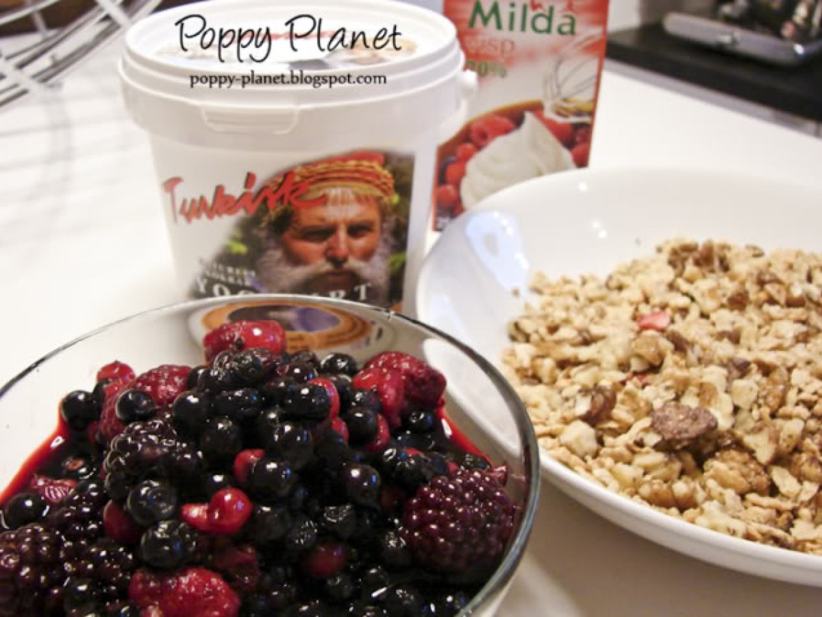 Crema de iaurt cu fructe de padure PrecedentulUrmătorul DesertFoarte ușor1 h 20 m Trimite unui prieten Printează pagina Adresează o întrebare autorului Postează o poză cu rețeta gătită de tine Ingrediente 4 fructe de padure iaurt fara arome nuci tocate cereale faramitate frisca lichida zahar vanilat miere de albine