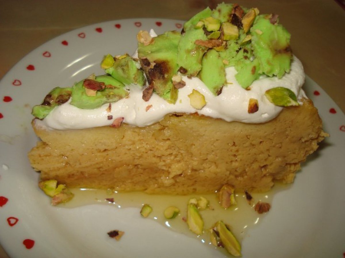 Crema de zahar ars- ornata cu frisca, inghetata si fistic DesertFoarte ușor50 min Trimite unui prieten Printează pagina Adresează o întrebare autorului Postează o poză cu rețeta gătită de tine Ingrediente 8 1 l lapte 6 oua 4 linguri de zahar + 6 linguri pentru caramelizat 1 plic zahar vaniliat 1 lingura faina/amidon