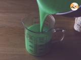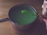 Odată ce se îngroașă, se ia amestecul de pe foc și se adaugă colorant verde. Amestecați astfel încât crema să fie foarte verde.