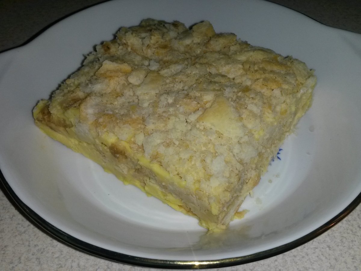Ingredientele necesare includ foi de Cremsnit, ouă, zahăr sau îndulcitor, făină, lapte, margarină și esență de vanilie.