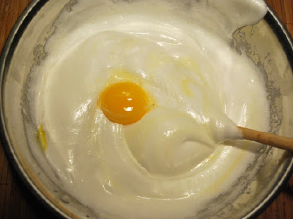 - Se adauga unul cate unul galbenusurile, apoi se incorporeaza amidonul