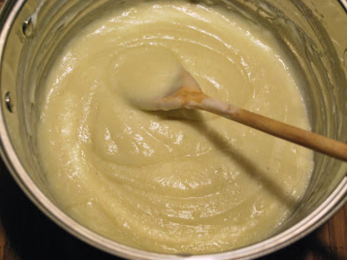 - Amestecati tot timpul pana incepe sa se ingroase...trebuie sa rezulte o crema groasa ( sa cada greu de pe lingura de lemn)