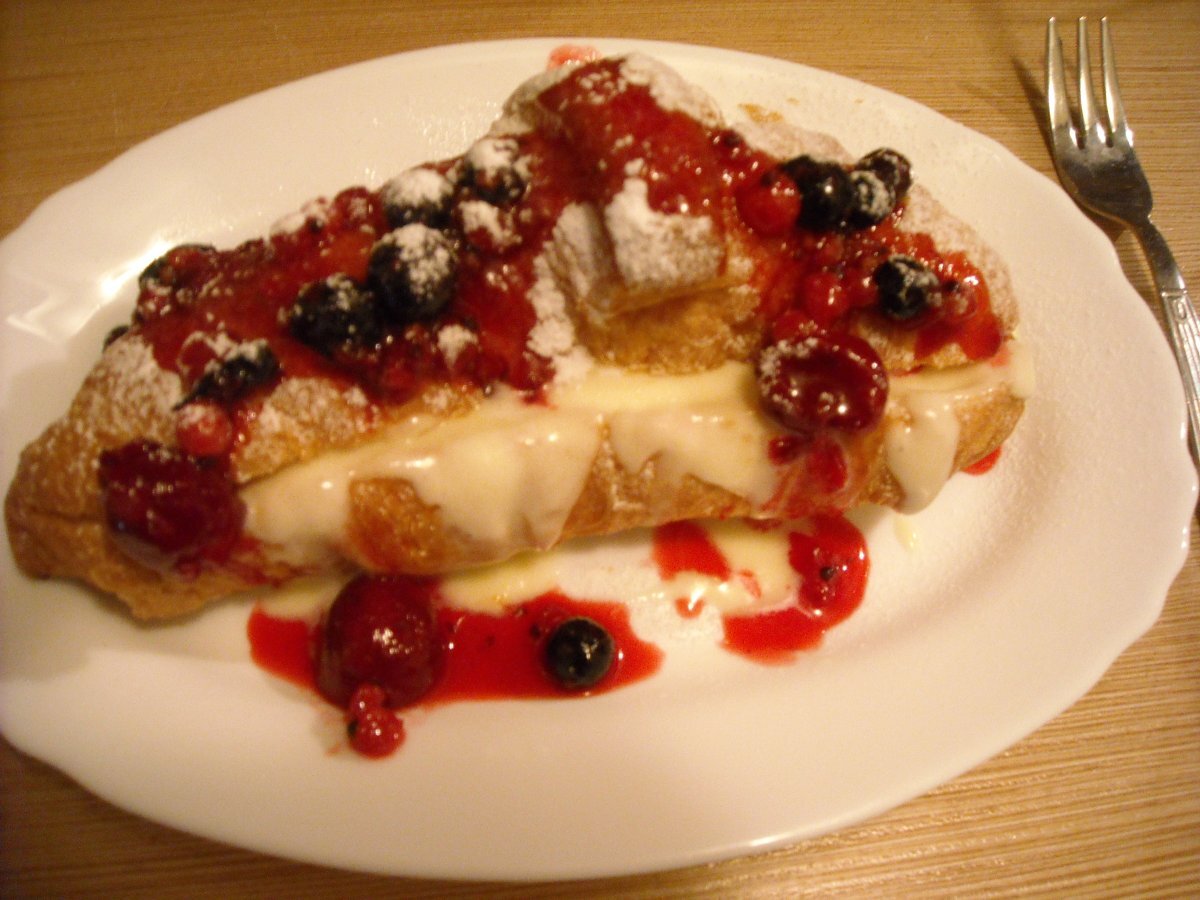 si cu un sos acrisor de fructe de padure. Asa am incununat o seara frumoasa petrecuta alaturi de prietenii nostri Diana si Adi si pot sa spun cu mana pe inima ca acest desert este nu numai delicios, ci si foarte simplu de facut. Asta pentru ca asa cum v-ati putut da deja seama este „pe jumatate facut in casa”, cum spune o emisiune culinara. Bine, bine, daca tot vreti sa-mi gasiti nod in papura, recunosc: pe un sfert facut in casa. Dar ce conteaza cand la sfarsit iti culegi meritele cu zambetul pe buze,