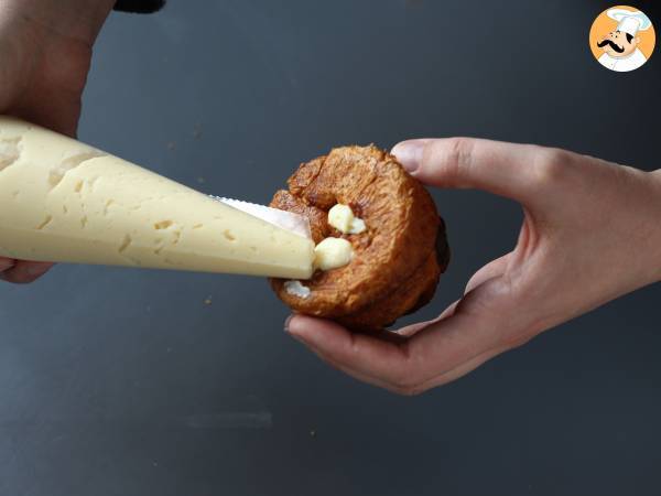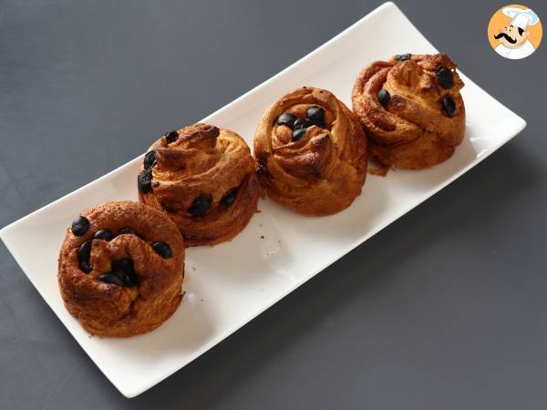 După ce v-ați îndrăgostit de versiunea savuroasă cu brânză, acum este timpul pentru irezistibilele cruffins dulci! Imaginați-vă un croissant sfărâmicios, în formă de brioșă și acoperit cu o cremă cremoasă de vanilie și fulgi de ciocolată topită... Este imposibil să rezistați! Ușor de preparat cu aluat de croissant gata făcut, aceste mici minunății sunt crocante la exterior și ultra moi la interior, perfecte pentru un mic dejun gourmet sau o gustare reconfortantă :)