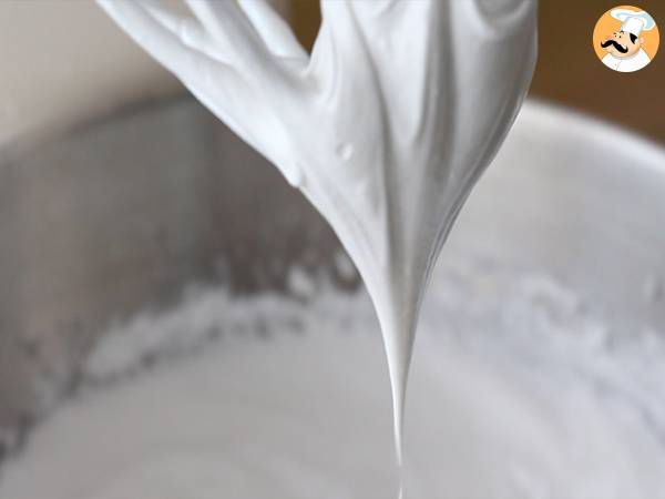 Trebuie sa bateti pana cand merengul formeaza ceea ce se numeste "ciocul pasarii".