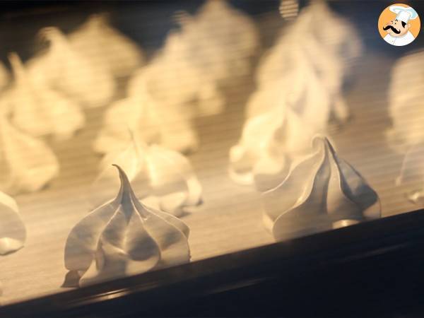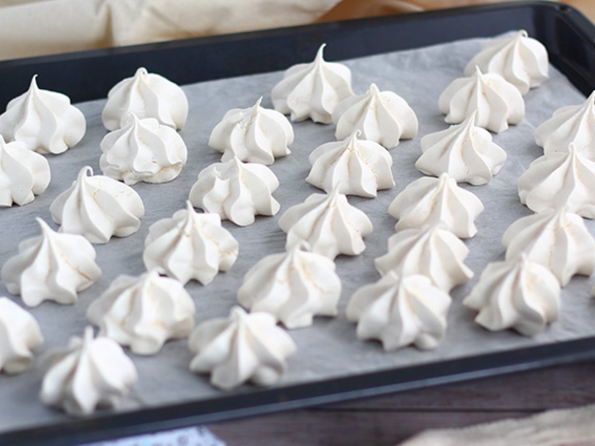 Puneti merengul imediat pe o hartie de copt intinsa intr-o tava.