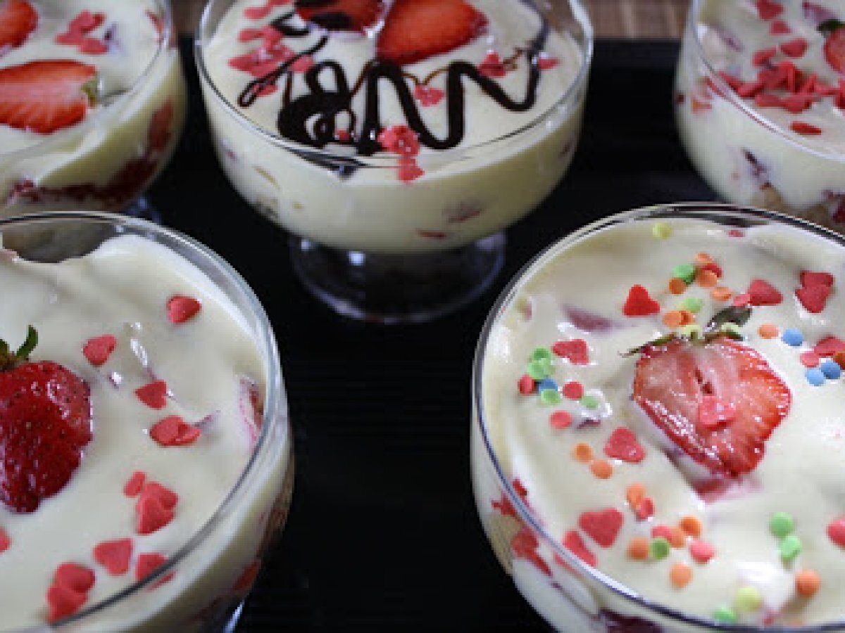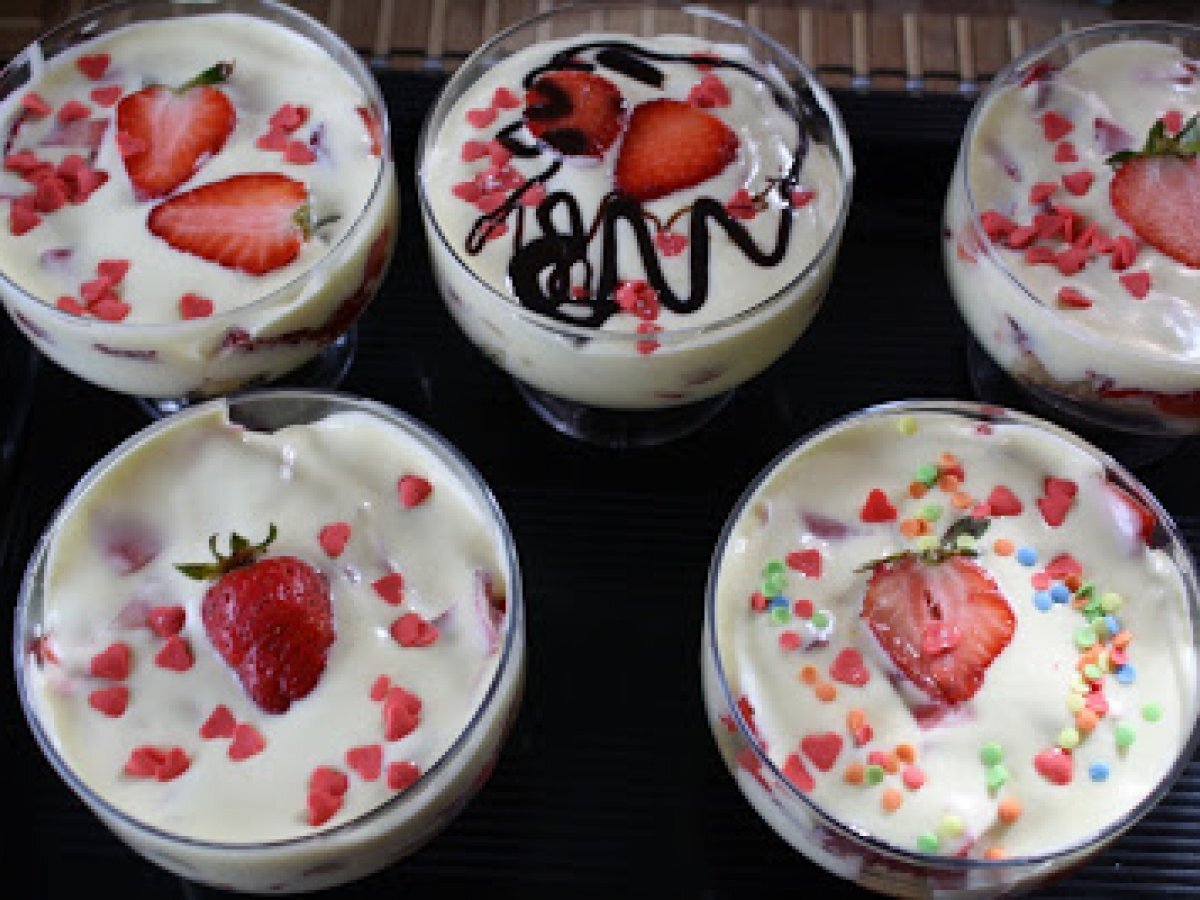 Desert cu capsuni si mascarpone PrecedentulUrmătorul DesertFoarte ușor4 h 40 m Trimite unui prieten Printează pagina Adresează o întrebare autorului Postează o poză cu rețeta gătită de tine Ingrediente 5 piscoturi sirop de capsuni mascarpone 2 oua zahar pudra capsuni proaspete.