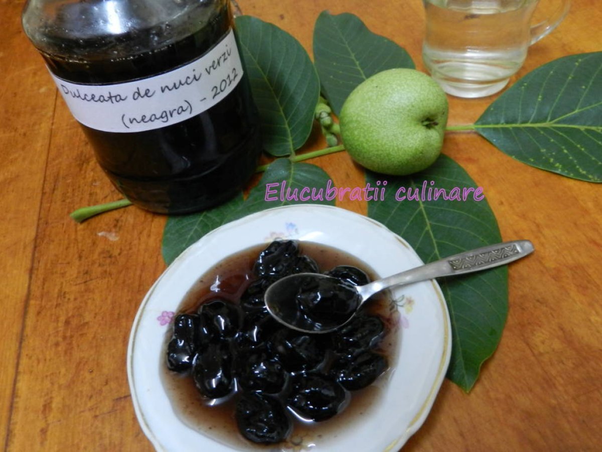 Dulceață de nuci verzi - varianta neagră PrecedentulUrmătorul DesertDificil7 ore1004 Kcal Trimite unui prieten Printează pagina Adresează o întrebare autorului Postează o poză cu rețeta gătită de tine un desert simplu si rafinat Ingrediente 8 1 kg zahăr, 90-100 nuci verzi, 1 pliculeț zahăr vanilat, zeama de la o lămâie, 1 linguriță sare de lămâie. Cost estimat: 13.05Euros€ (1.63€/porție)