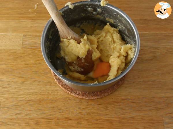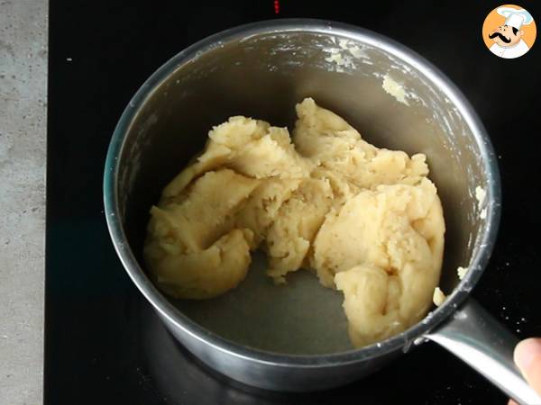 Intr-o cratita puneti apa si puneti pe foc, adaugati untul si putina sare. Cand untul se topeste, se adauga faina intr-o singura miscare si se amesteca pana cand aluatul se desprinde de marginile craticioarei.