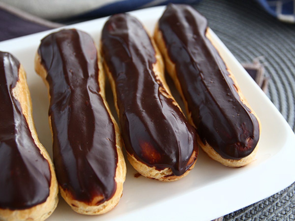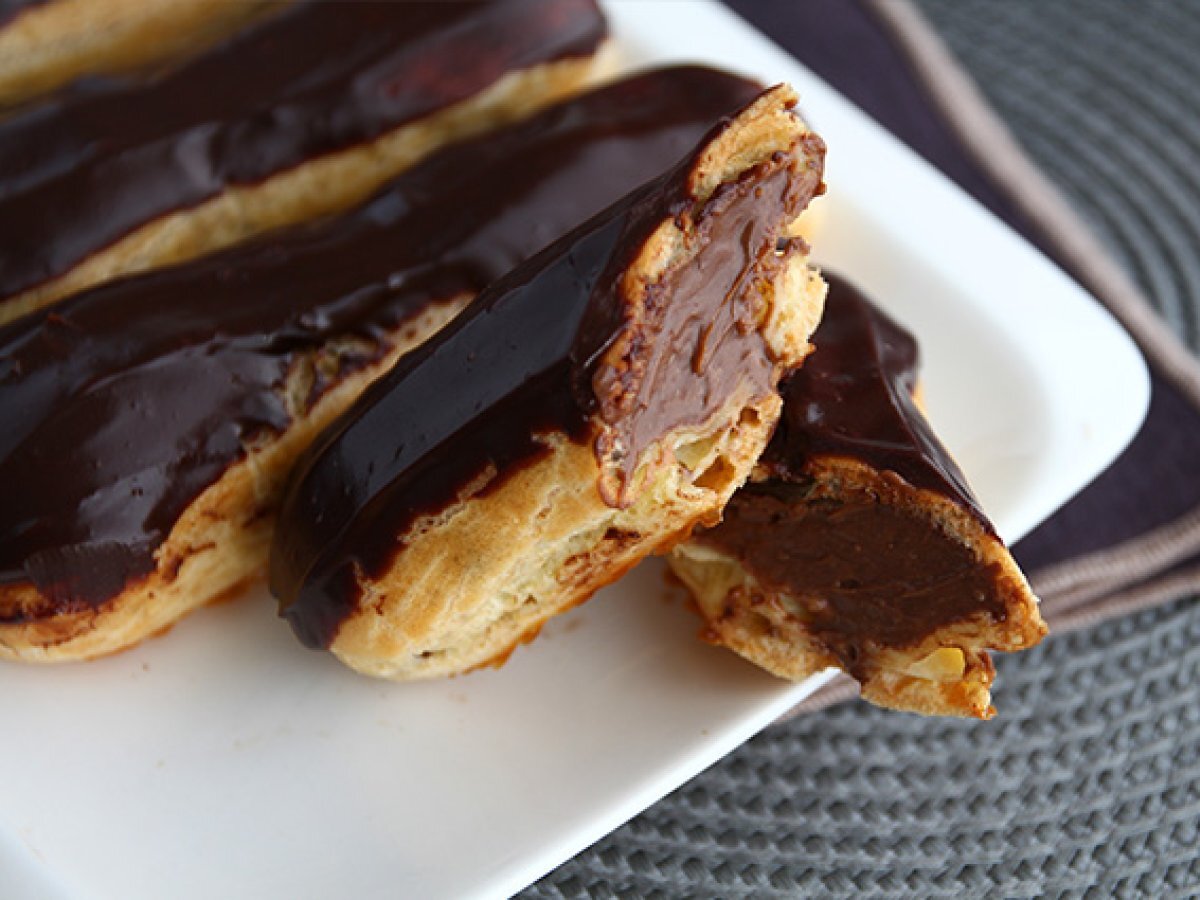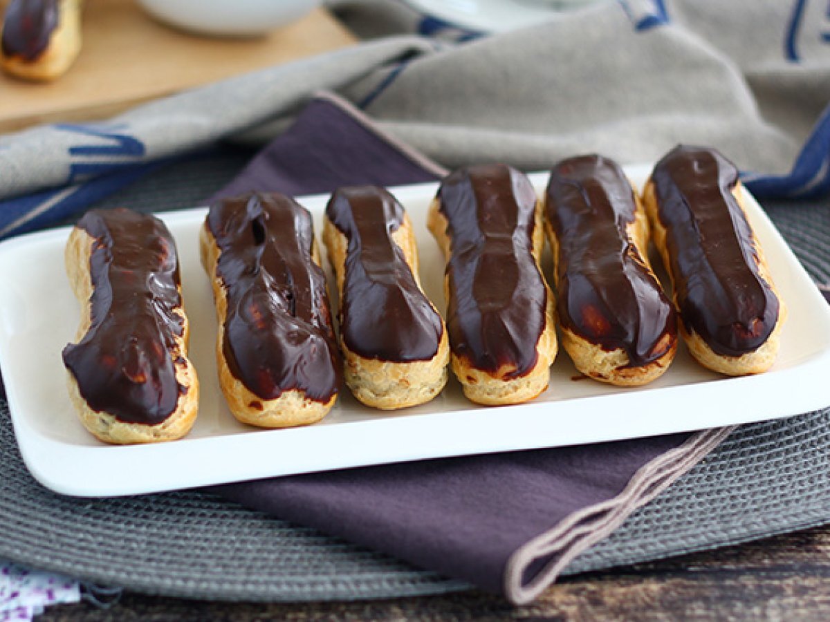 Astazi prezentam un desert frantuzesc: eclere cu ciocolata! O reteta pe care o explicam pas cu pas, in versiunea scrisa + foto, dar si video. Deci, veti putea sa reproduceti linistit cojile de choux, crema de ciocolata si glazura, cele 3 componente esentiale ale eclerelor. Vor fi mai bune ca la cofetarie!