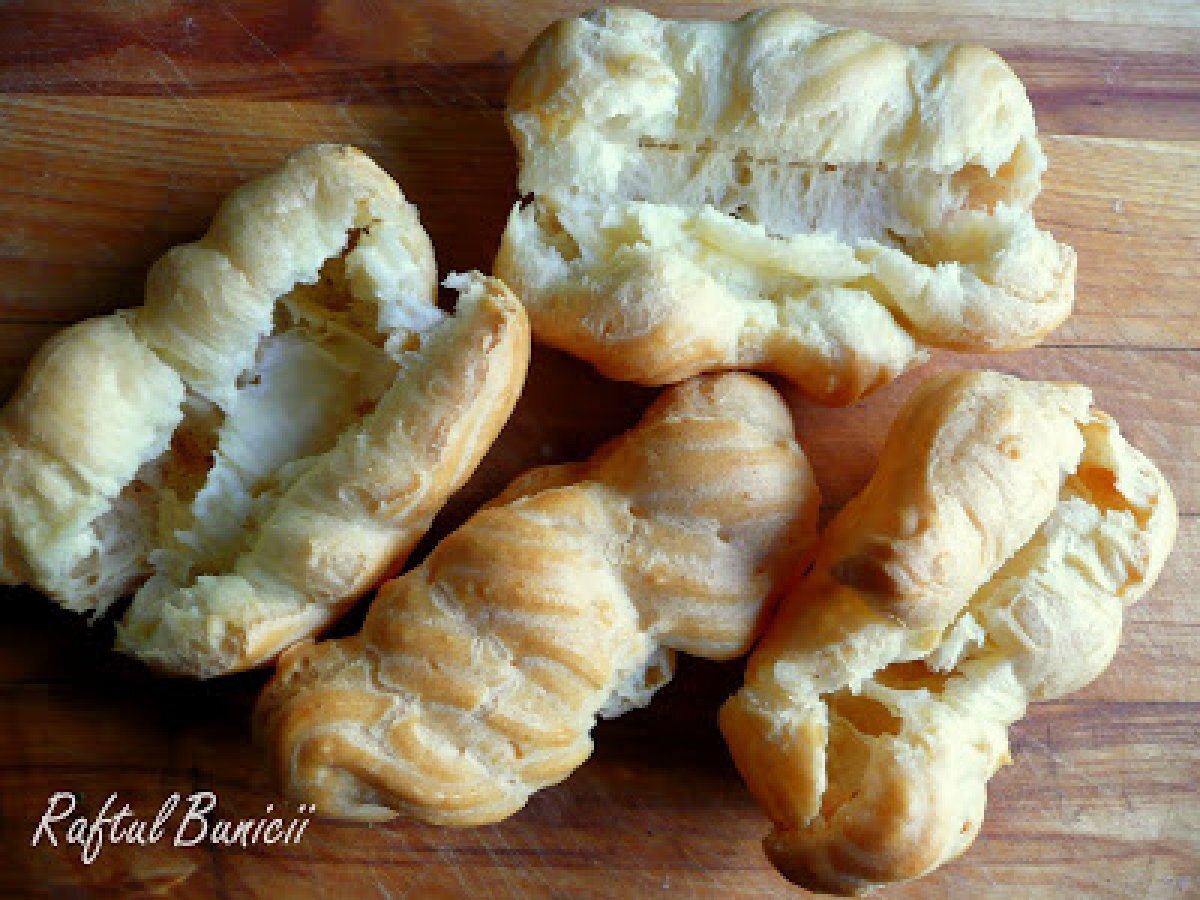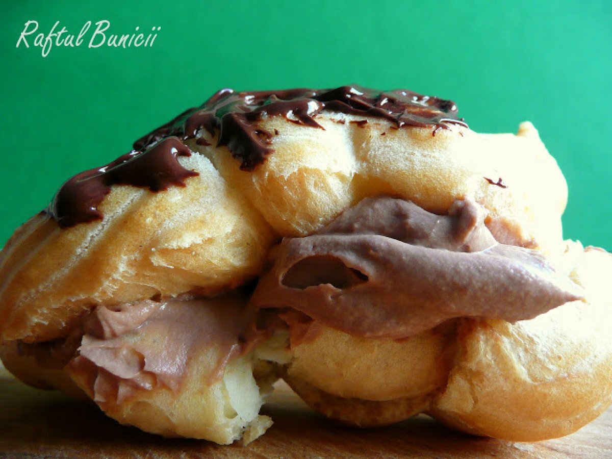 Eclere cu mascarpone si ciocolata PrecedentulUrmătorul DesertFoarte ușor35 min Trimite unui prieten Printează pagina Adresează o întrebare autorului Postează o poză cu rețeta gătită de tine Ingrediente 4 Pentru eclere: 150 ml apa 100 ml ulei 100 g faina 2 oua Pentru crema: o cutie mascarpone 3 linguri de zahar 3 linguri de cacaoesenta de rom Pentru glazura: ciocolata topita