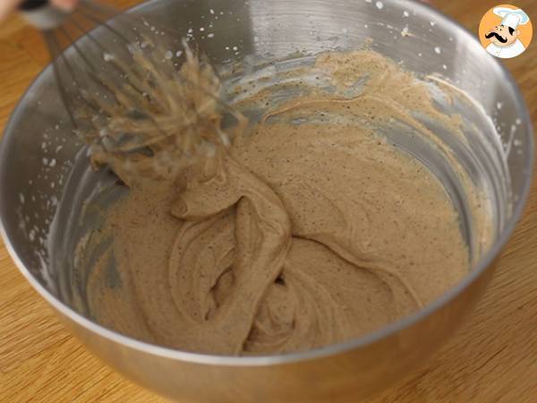Folosind un chopper sau un cutit, zdrobiti aproximativ 30 gr alune, apoi amestecati-le cu ciocolata tartinabila. Lasati deoparte.