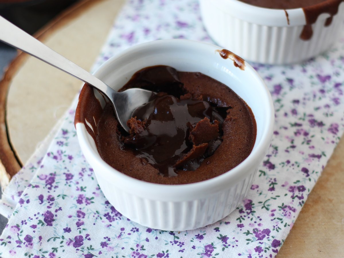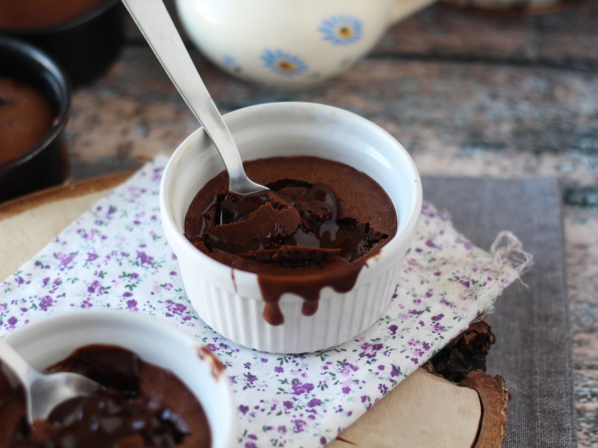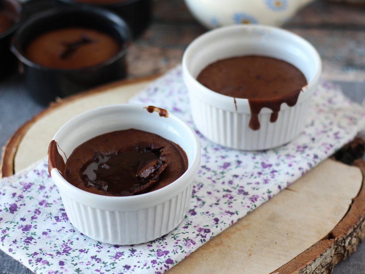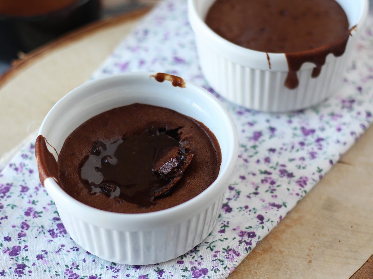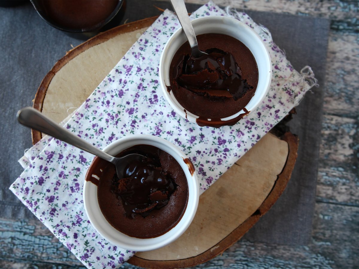 Puneți vasele Ramekins în friteuza cu aer setată la 210°C. Gătiți timp de 6 până la 7 minute pentru a obține un miez curgător. Gata!