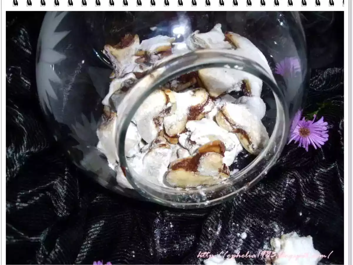 Fursecuri cu migdale si ciocolata PrecedentulUrmătorul DesertUșor1 oră Trimite unui prieten Printează pagina Adresează o întrebare autorului Postează o poză cu rețeta gătită de tine Ingrediente 6 Pentru aluat : 150 gr. faina; 100 gr. migdale macinate; 2 oua; 1 galbenus; 130 gr. unt; 120 gr. zahar pudra; 1 plic zahar vanilat. Pentru crema : 200 gr. ciocolata neagra; 150 ml smantana dulce Pentru decor: zahar pudra