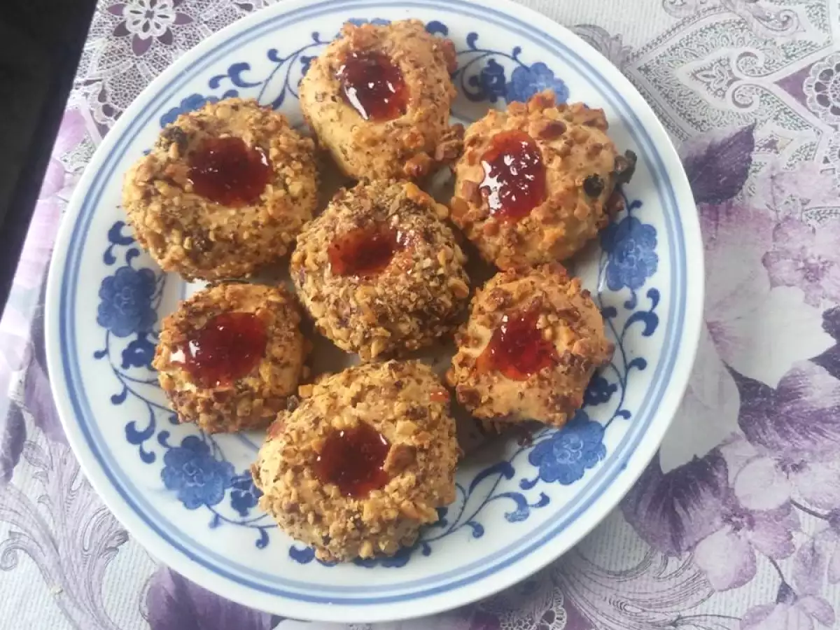 Fursecuri cu nuca si dulceata de capsuni DesertUșor55 min Trimite unui prieten Printează pagina Adresează o întrebare autorului Postează o poză cu rețeta gătită de tine :) Ingrediente 15 100 ml ulei, 100 ml apa, 500 g faina, 200 g nuca macinata, 1 albus, 2 oua + 1 galbenus, 200 g zahar pudra, 195 g dulceata de capsuni, sare.