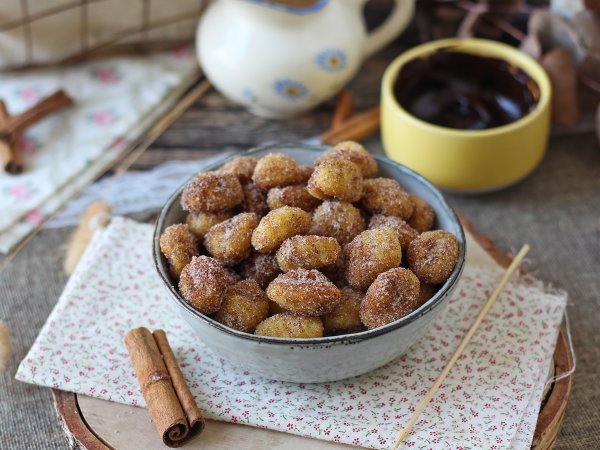 Gnocchi crocanți la exterior, moi la interior, acoperiți cu zahăr și scorțișoară, de ronțăit și de înmuiat în ganache de ciocolată pentru răsfăț maxim. Uitați tot ce știți despre gnocchi, iată o versiune cu totul gourmet care trebuie savurată fără moderație! Acești gnocchi acoperiți cu scorțișoară și ușor crocanți făcuți la Airfryer sunt alternativa perfectă la churros. Aurii la exterior, moi la interior, cu acel gust dulce care dă dependență... Imposibil de rezistat! Pregătiți în doar câteva minute, sunt perfecți pentru o pauză de dulce. Dacă vă place textura, încercați rețeta noastră de gnocchi simpli cu Airfryer, ideală pentru o versiune sărată. Iar dacă această rețetă îți amintește de churros, este normal! Veți găsi această delicatesă în rețeta noastră de churros ușoare și crocante, pentru o plăcere și mai dulce.