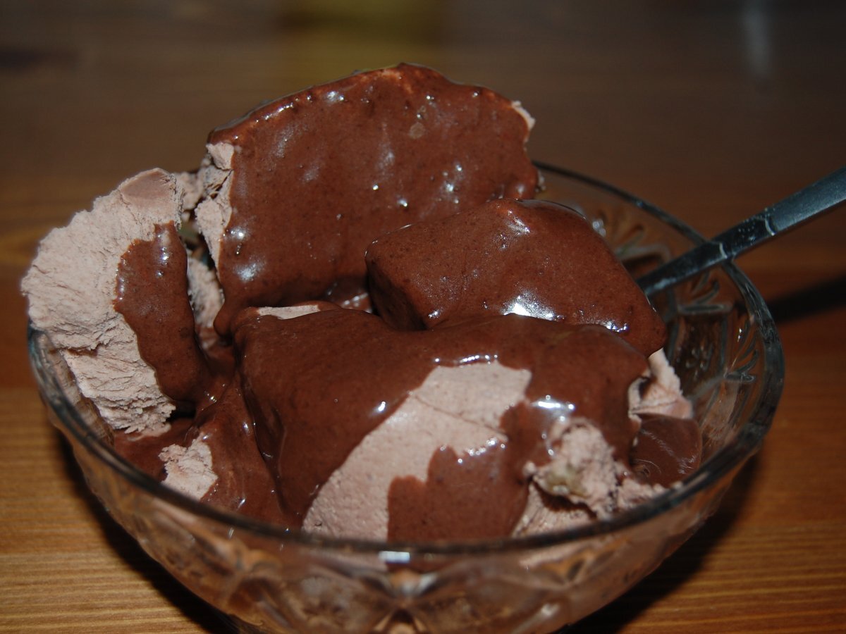 Inghetata cu cacao si sos de ciocolata