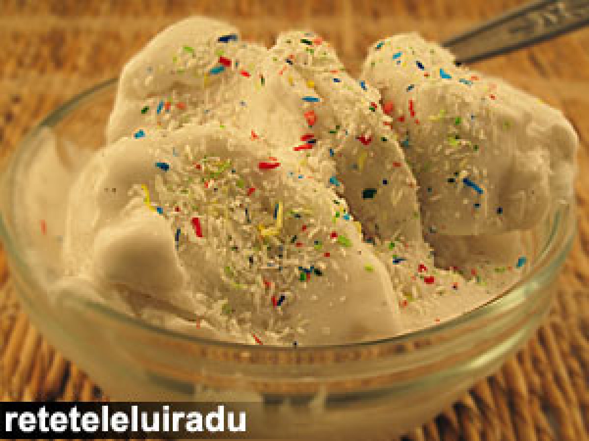 Inghetata cu nuca de cocos si vanilie DesertFoarte ușor10 min740 Kcal Trimite unui prieten Printează pagina Adresează o întrebare autorului Postează o poză cu rețeta gătită de tine Ingrediente 4 160 ml apa 120 g zahar 1-2 batoane de vanilie 500 ml lapte de cocos miez de nuca de cocos deshidratat Cost estimat: 0.75Euros€ (0.19€/porție)