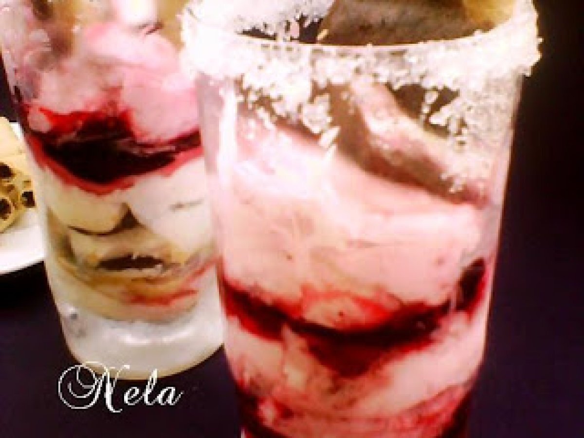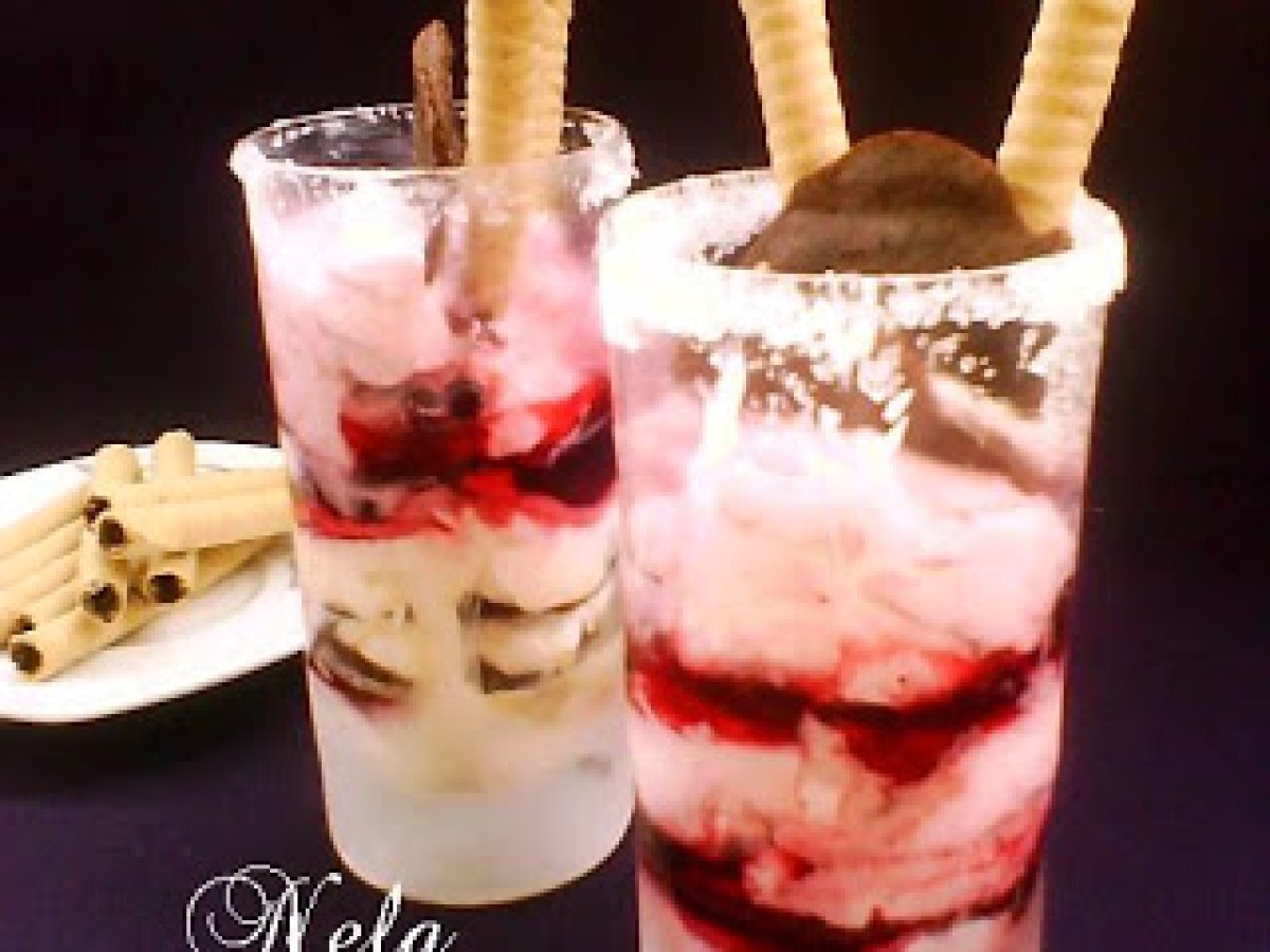 Inghetata la pahar PrecedentulUrmătorul DesertFoarte ușor10 min Trimite unui prieten Printează pagina Adresează o întrebare autorului Postează o poză cu rețeta gătită de tine Ingrediente 2 Pentru paleuri : 2 albusuri 100 g nuca macinata 50 g cacao 50 g zahar Pentru inghetata: 300 ml frisca 150 g iaurt 100 g fructe 50 g zahar