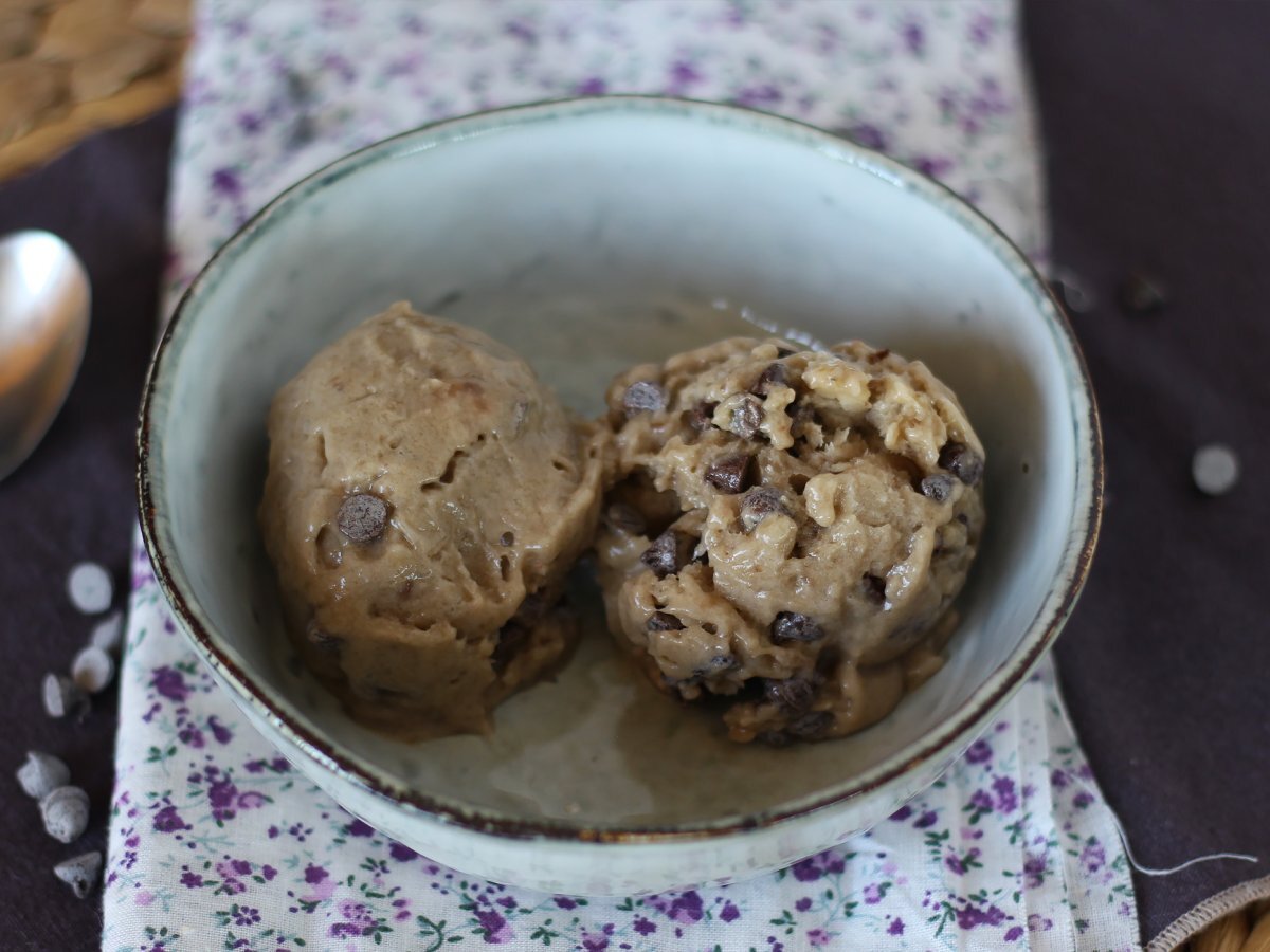 Una dintre înghețatele noastre preferate? Înghețata Cookie Dough! Cunoașteți acest aluat de prăjituri gourmet acoperit cu fulgi de ciocolată, cel înainte de a forma fursecurile mici și de a le coace. Ei bine, o marcă celebră de înghețată a făcut o rețetă din el. De data aceasta, am reprodus o înghețată Cookie Dough, dar făcută din banane congelate ;-) O versiune vegană și super fresh!