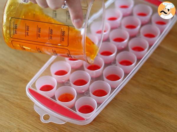 Asigurați-vă că gelatina este bine scursă și amestecați bine ingredientele. De asemenea, ungeti formele de silicon cu ulei pentru a facilita scoaterea jeleurilor.