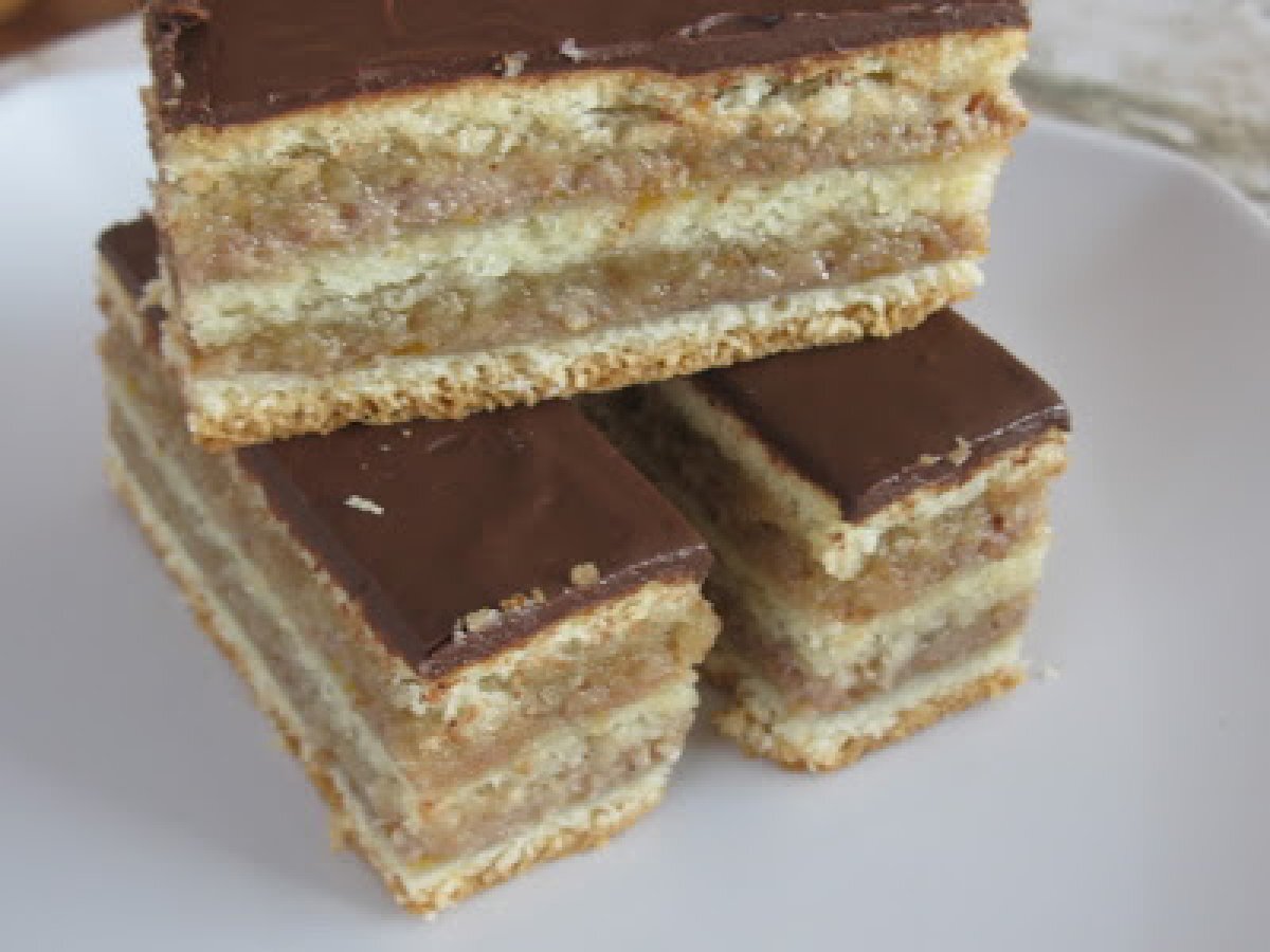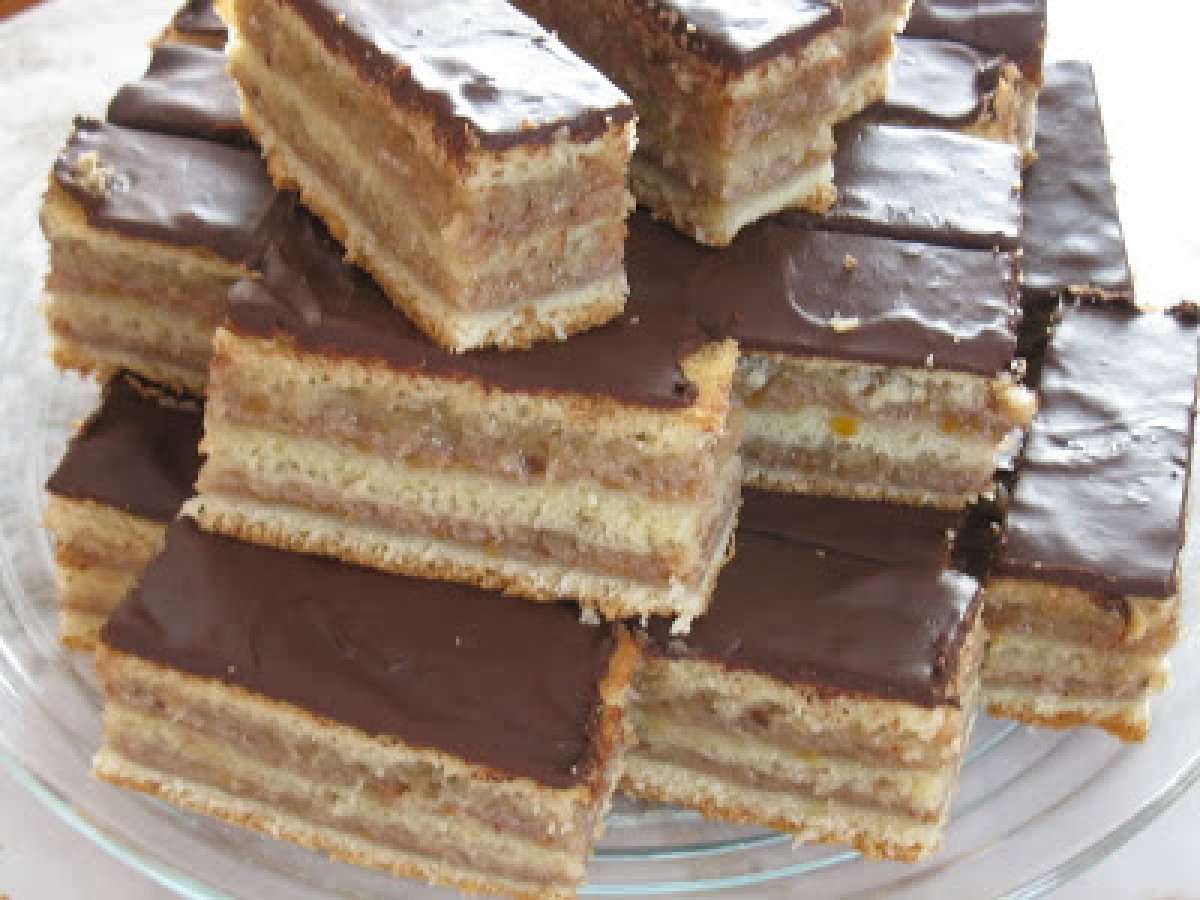 Jerbo (zserbo szelet) PrecedentulUrmătorul DesertFoarte ușor1 oră Trimite unui prieten Printează pagina Adresează o întrebare autorului Postează o poză cu rețeta gătită de tine Ingrediente 4 600 g faina 2 galbenusuri 0.5ml rom 100 ml lapte 250 g unt 1 vf lingurita sare umplutura 450-500 g gen de caise, 450 g nuci macinate fin 300 g zahar (ultimele 2 le amestecam)