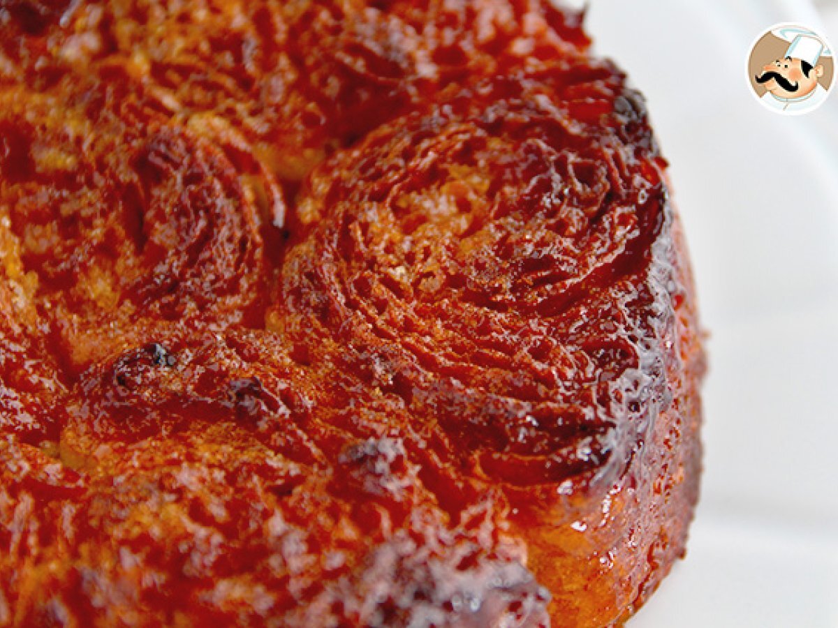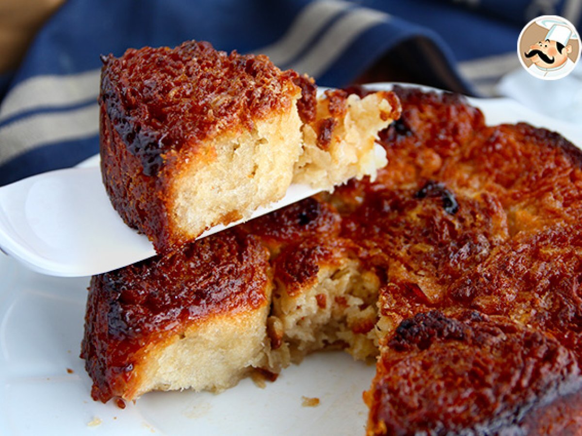 Se coace timp de 30 de minute la 210° C. Asezati o tava sub forma pentru a recupera orice caramel care se scurge.