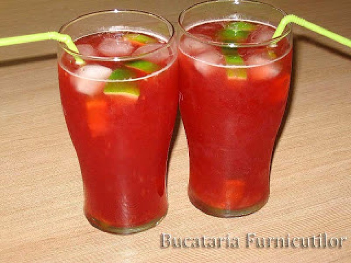 Limonada cu capsuni PrecedentulUrmătorul DesertFoarte ușor10 min Trimite unui prieten Printează pagina Adresează o întrebare autorului Postează o poză cu rețeta gătită de tine Ingrediente 4 sucul de la 1 lamaie sucul de la 3 limes 3 lingurite zahar brun 400 ml suc de capsuni 500 ml apa plata sau minerala 8 - 10 cuburi gheata