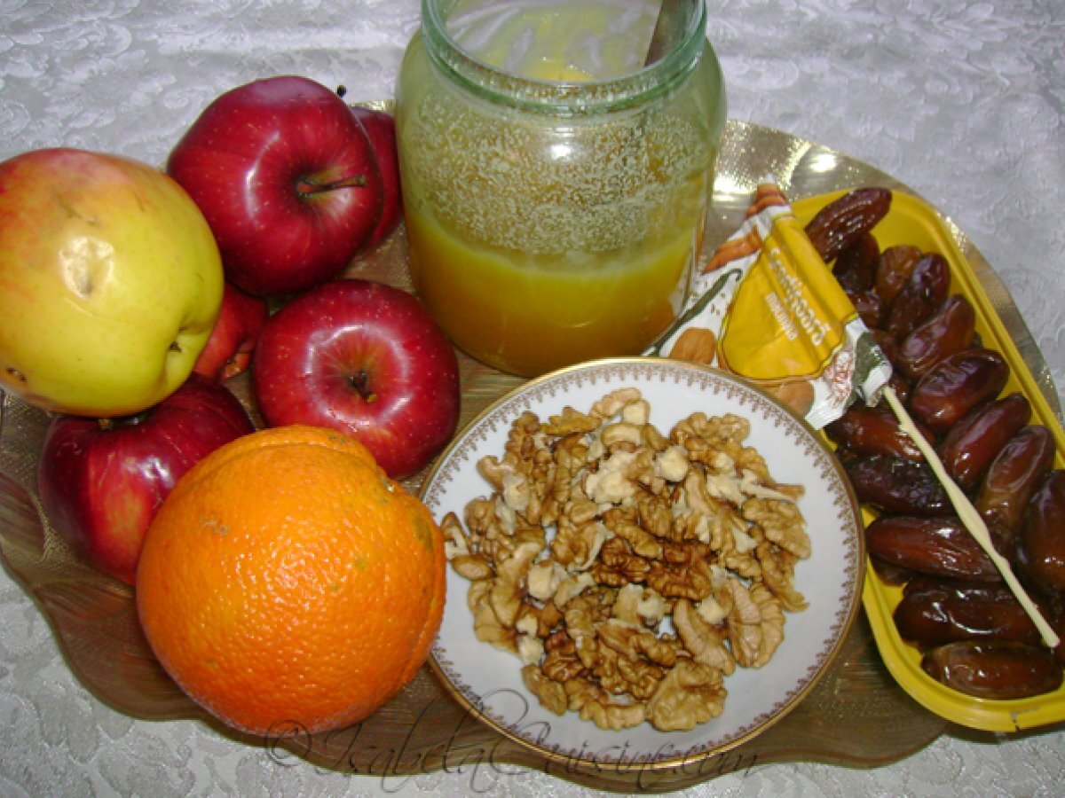 Mar copt, cu nuca si miere PrecedentulUrmătorul DesertFoarte ușor40 min233 Kcal Trimite unui prieten Printează pagina Adresează o întrebare autorului Postează o poză cu rețeta gătită de tine Ingrediente 4 4 mere mari 1 portocala 60 g nuca cateva curmale confiate 4 lingurite de miere scortisoara Cost estimat: 3.53Euros€ (0.88€/porție)