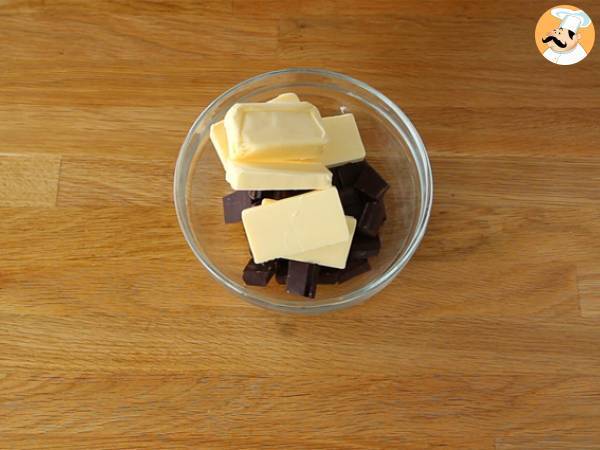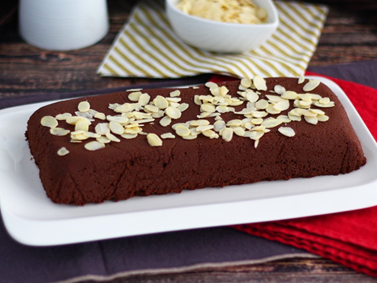 Ingredientele principale sunt 200 gr ciocolata neagra, 150 gr unt, 4 oua, 75 gr zahar, 2 foi de gelatina si fulgi de migdale.