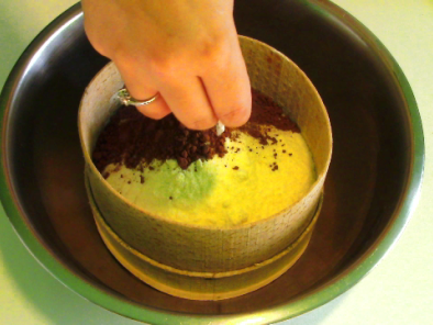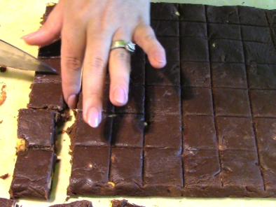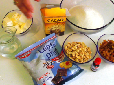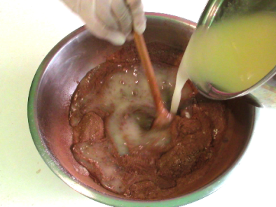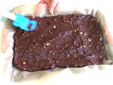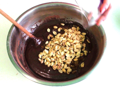 Se bat ouăle cu zahărul, până când acesta se topeşte, peste care se adaugă nucile, coaja de portocală, sucul de portocală, intermitent, şi se amestecă continuu până se încorporează toate. Se încorporează apoi şi cacaoa, făina şi praful de copt.