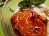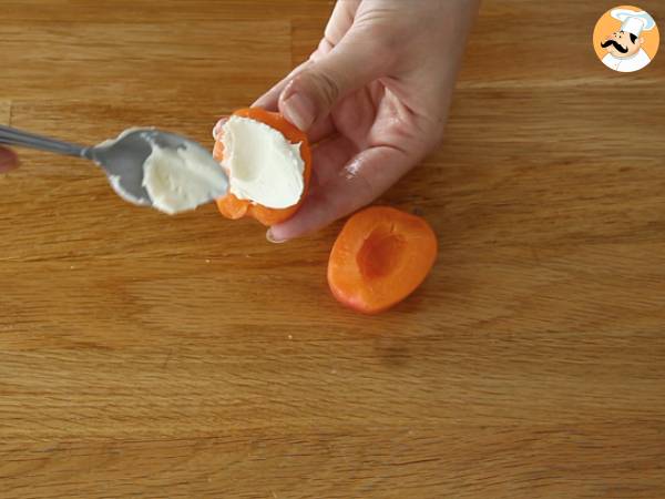 Spalati caisele, taiati-le in 2 si scoateti samburele. Umpleti mijlocul cu amestecul de mascarpone + zahar si inchideti caisele.