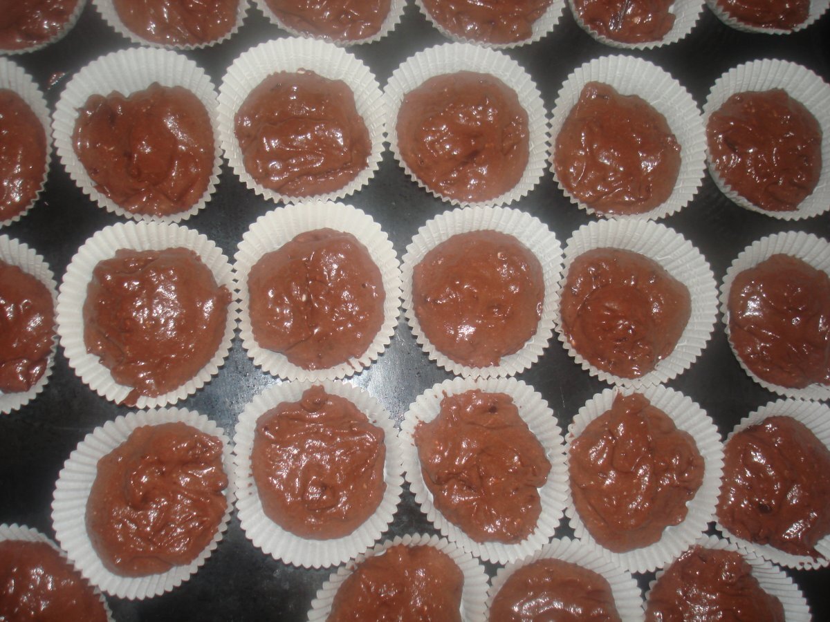 Muffins cu cacao si bucati de ciocolata PrecedentulUrmătorul DesertFoarte ușor40 min Trimite unui prieten Printează pagina Adresează o întrebare autorului Postează o poză cu rețeta gătită de tine Ingrediente 8 Ingrediente: 225 gr faina 25 gr.cacao 2 lingurite praf de copt 1/2 lingurita bicarbonat de sodiu 150 gr.ciocolata de menaj taiata bucatele mici 2 oua 300 ml smantana 85 gr.zahar (optional zahar brun) 85 gr.unt