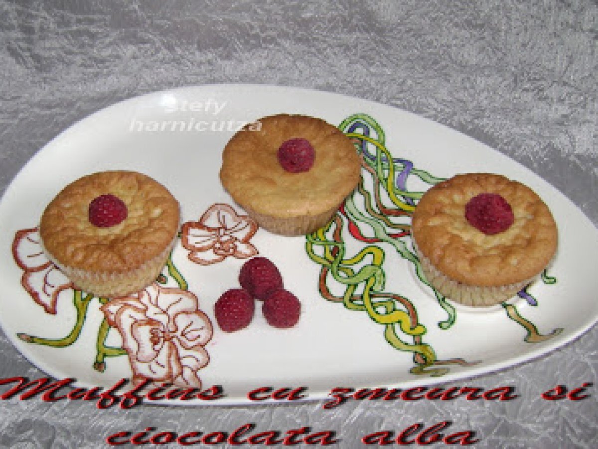 Muffins cu zmeura si ciocolata alba