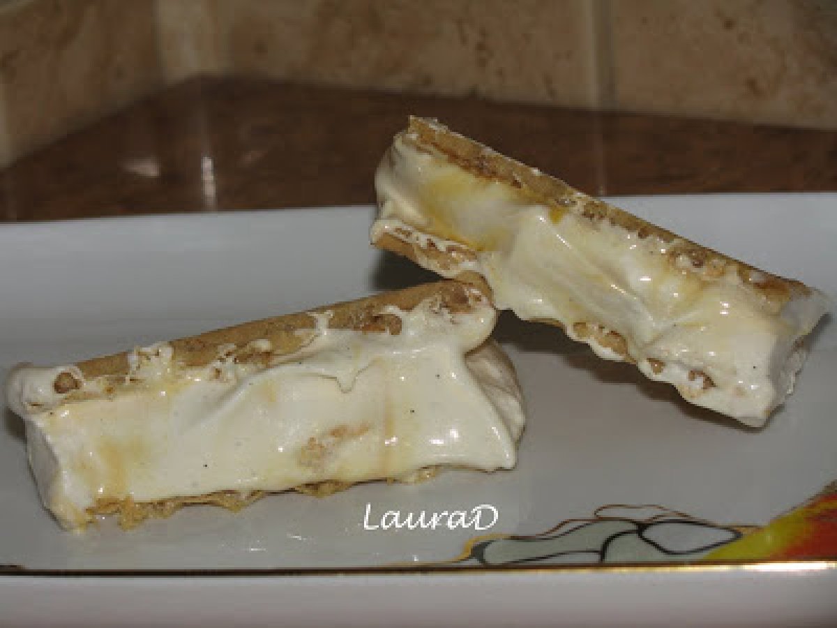 Napolitane cu crema alba de vanilie pufoasa si crocanta PrecedentulUrmătorul DesertFoarte ușor50 min Trimite unui prieten Printează pagina Adresează o întrebare autorului Postează o poză cu rețeta gătită de tine Ingrediente 4 2 foi de napolitana Pentru crema 200 g zahar + 100 g zahar 100 g miere 75 ml apa zeama de la 1 lamaie 2 albusuri semintele rase de la 1 baton de vanilie 1 lingurita esenta de vanilie