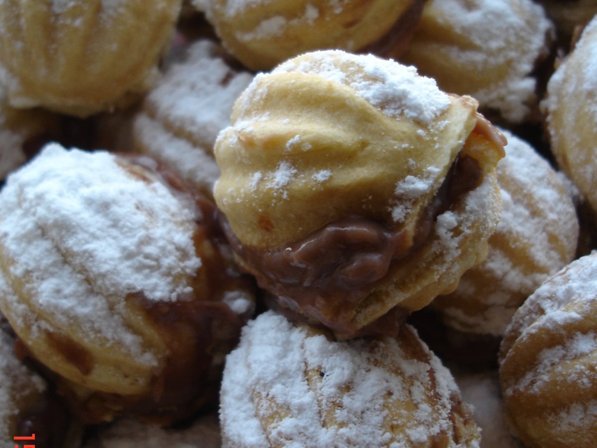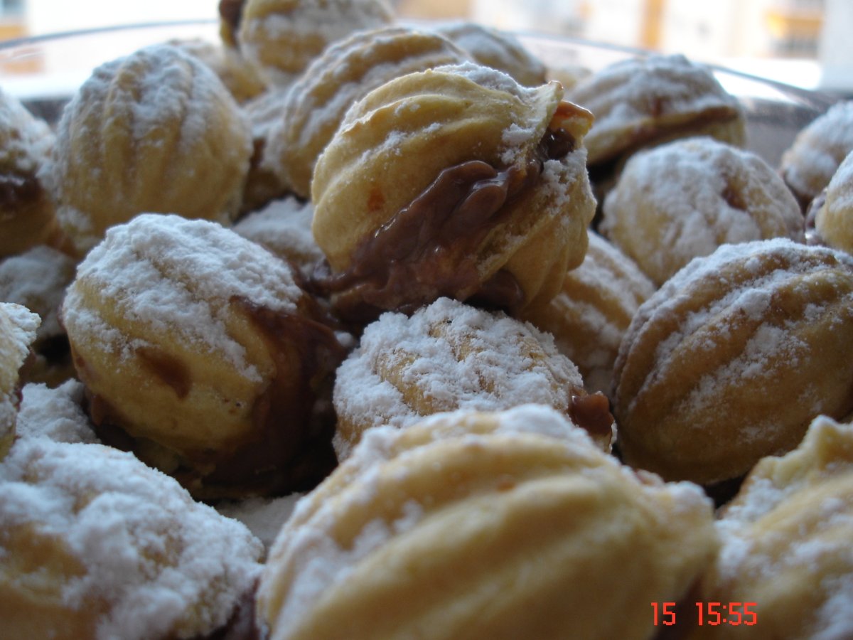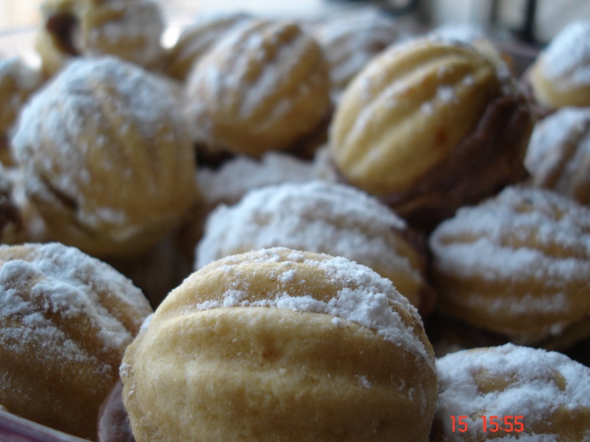 Nuci cu crema PrecedentulUrmătorul DesertFoarte ușor1 h 10 m Trimite unui prieten Printează pagina Adresează o întrebare autorului Postează o poză cu rețeta gătită de tine Ingrediente 8 Coca: 3 oua 1 pachet margarina 1 cana zahar esenta de rom 2 plicuri zahar vanilat coaja de lamaie si/sau portocala faina cata intra (cam 500-600g) pana nu se mai lipeste de maini Crema: 1 plic budinca de ciocolata 100g unt 500 ml lapte aroma (rom, vanilie) 5 linguri de zahar zahar pudra