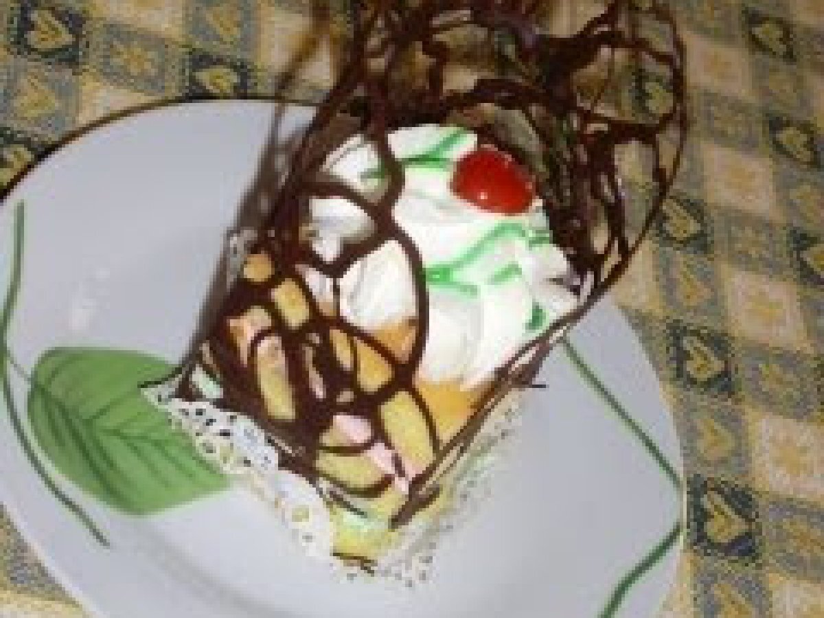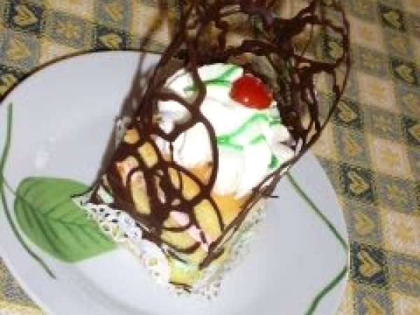 Nuferi PrecedentulUrmătorul DesertFoarte ușor1 h 30 m Trimite unui prieten Printează pagina Adresează o întrebare autorului Postează o poză cu rețeta gătită de tine Ingrediente 4 BLAT: 12 oua 12 g zahar 12 g faina SIROP: 100 ml ap 100 g zahar 1 fiola esenta de vanilie 100 ml suc de ananas CREMA : 1 ou 4 g zahar 150 ml lapte 500 ml frisca lichida kiwi piersici capsuni ananas EXTRA: 300 g ciocolata amaruie 125 ml frisca lichida putin colorant rosu si verde cirese confiate sirop verde in tub pt ornat