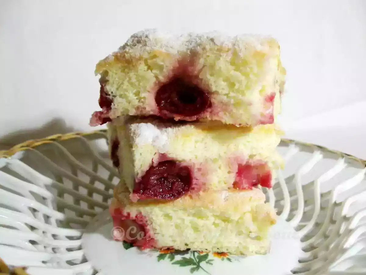 Pandispan cu visine congelate (frozen sour cherry sponge) DesertFoarte ușor50 min285 Kcal Trimite unui prieten Printează pagina Adresează o întrebare autorului Postează o poză cu rețeta gătită de tine Ingrediente 6 7 oua, separate 7 linguri faina 7 linguri zahar 3 linguri ulei de floarea soarelui 1 lingurita praf de copt 2 lingurite esenta de vanilievisine congelate - presarate cu putina fainazahar vanilat, pentru presarat Cost estimat: 1.75Euros€ (0.29€/porție)